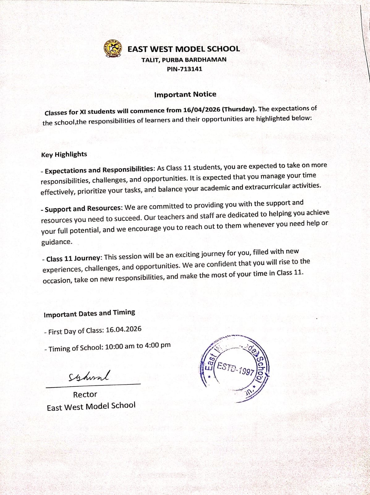 Aristotle said, "educating the mind without educating the heart is no education at all." In East West Model School. We believe in all-round development of our students. East West Model School is a miror